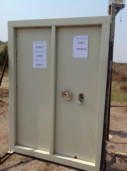 B型抗爆门包括双层的面板,双层面板之间支撑有多条钢制骨架。位于面板中部位置的钢制骨架之间设置有减震装置,两个面板的侧面边缘处安装有锁具,两个面板之间除了减震装置和锁具之外的其余位置均填充有...